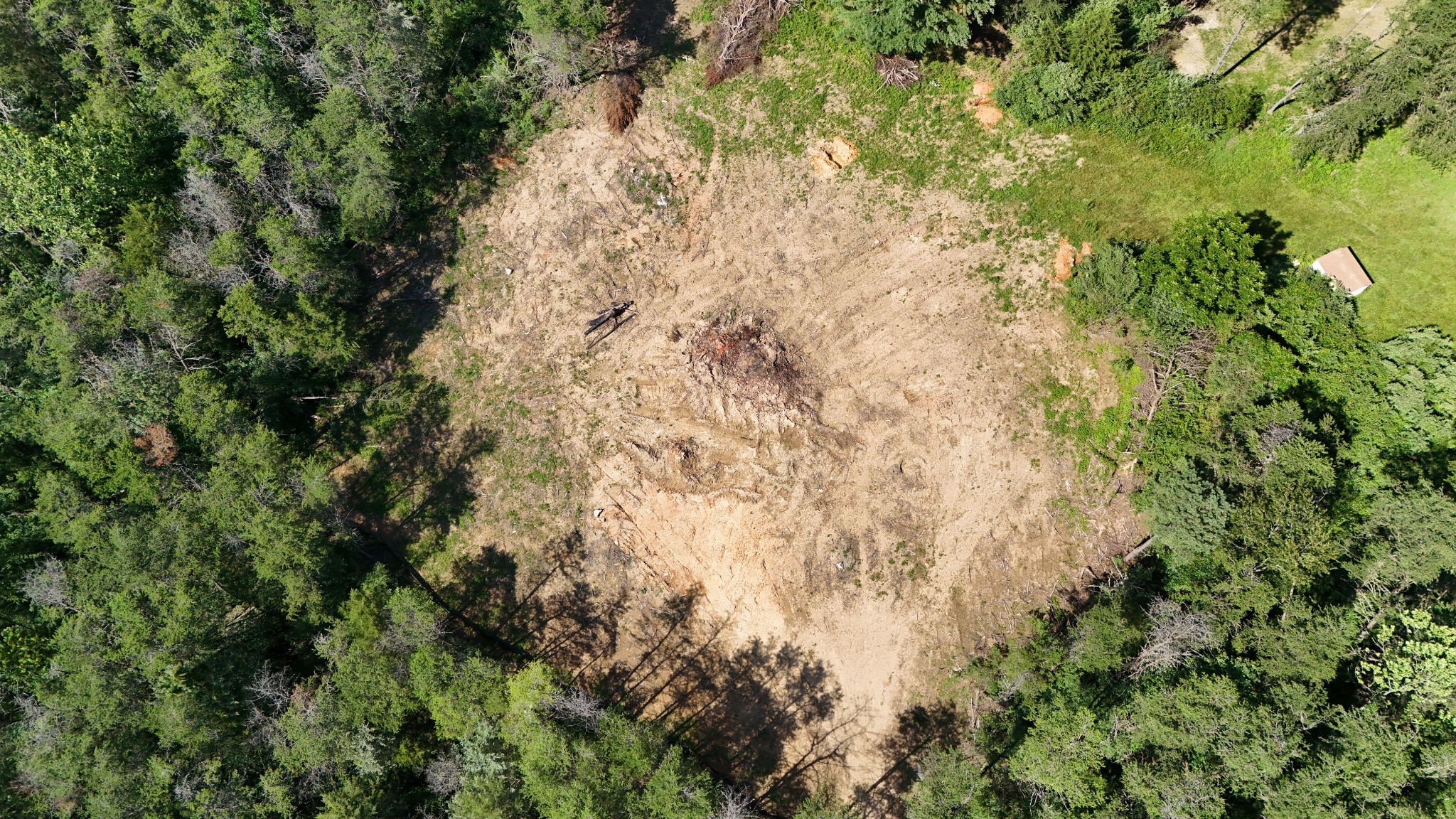 Initial clearing of the main house building lot is complete. We worked with a local crew to clear